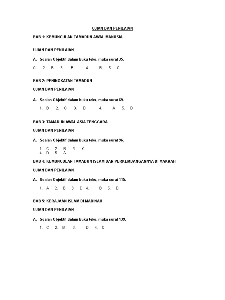 Soalan Objektif Sejarah Kssm Tingkatan 4